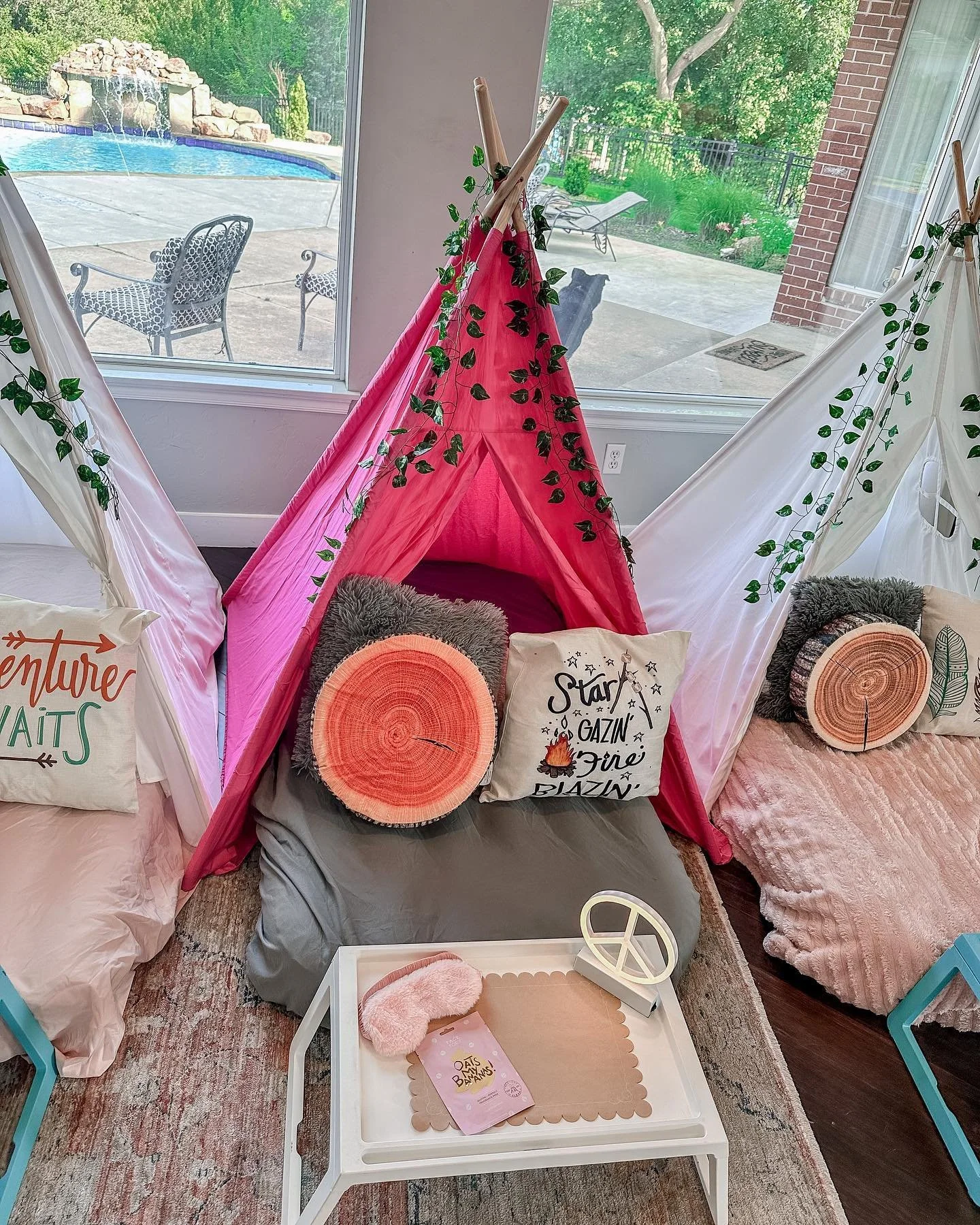 This setup includes a S’more snack box for bonfire fun (parent supervised of course;)