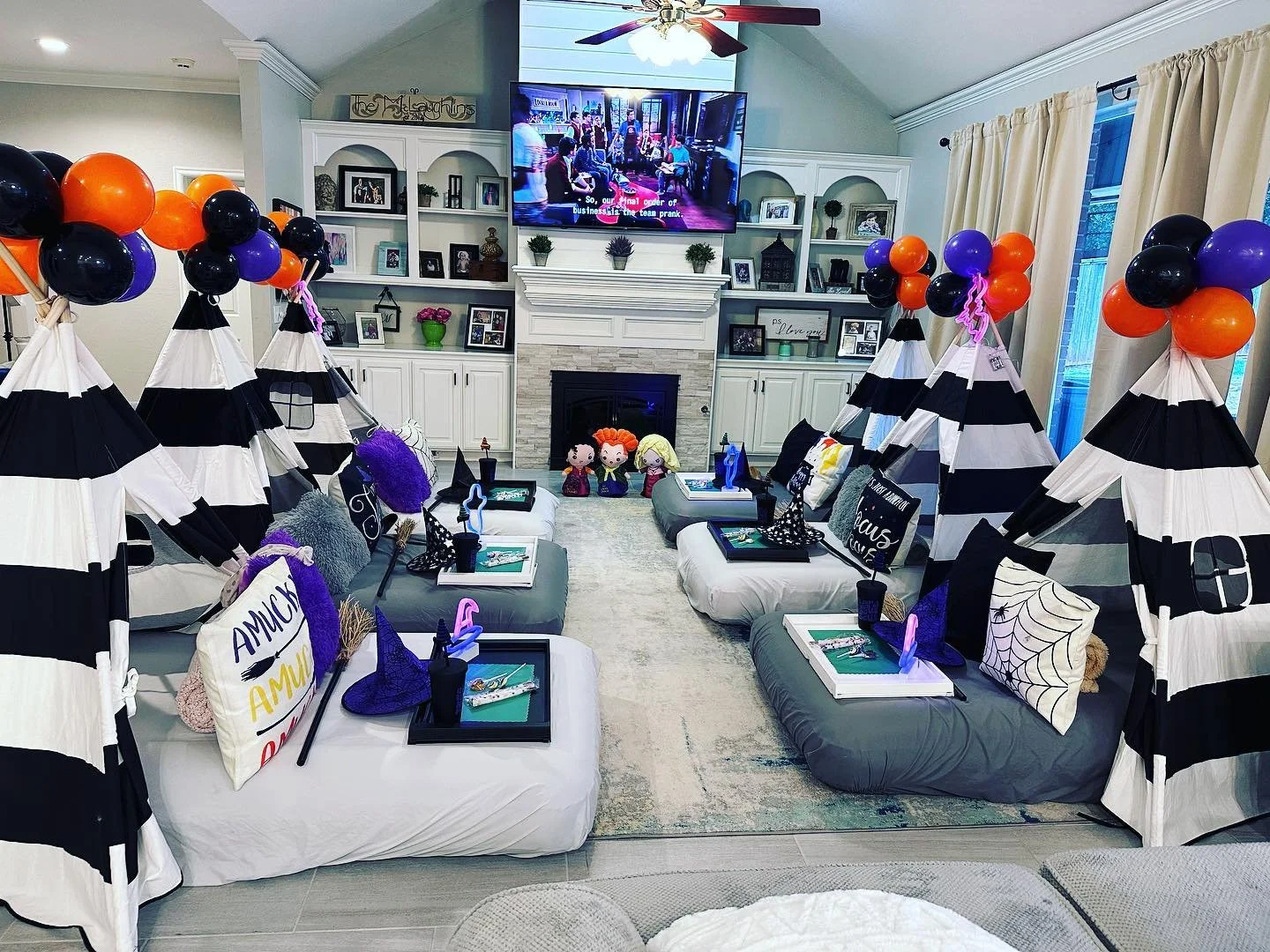 We have several holiday themes to choose from if you are throwing a festive party or have family coming into visit and want to add some spice to their sleeping arrangements!